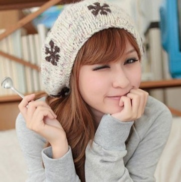 衣服什么颜色最好帽子也是什么颜色,不要同色但要相差不大的,淡淡灰色的毛线帽子,再在帽子上面钩点小雪花显得不那么死板了,这样显得非常的柔和好看。